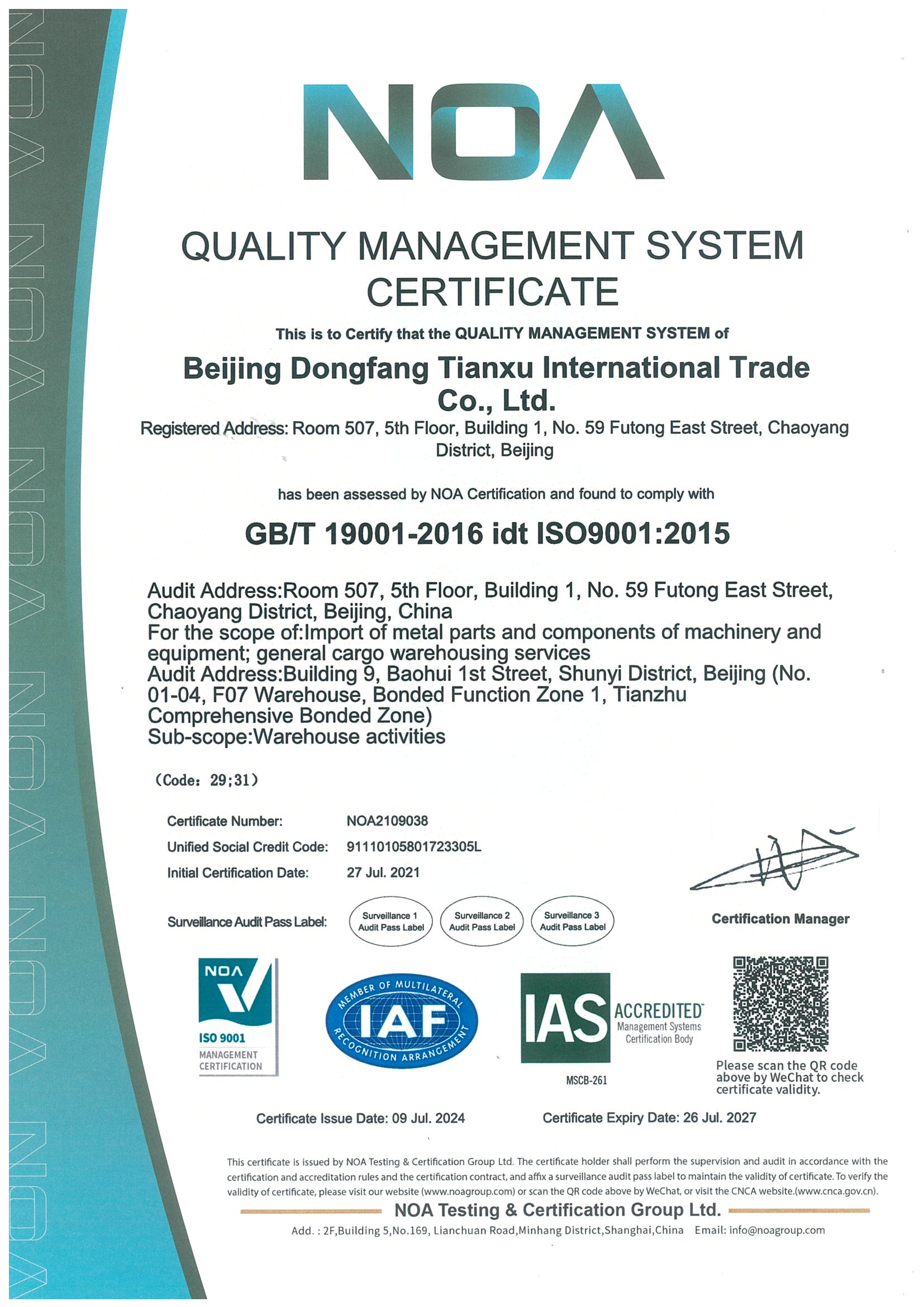 东方天旭ISO9001(英文)