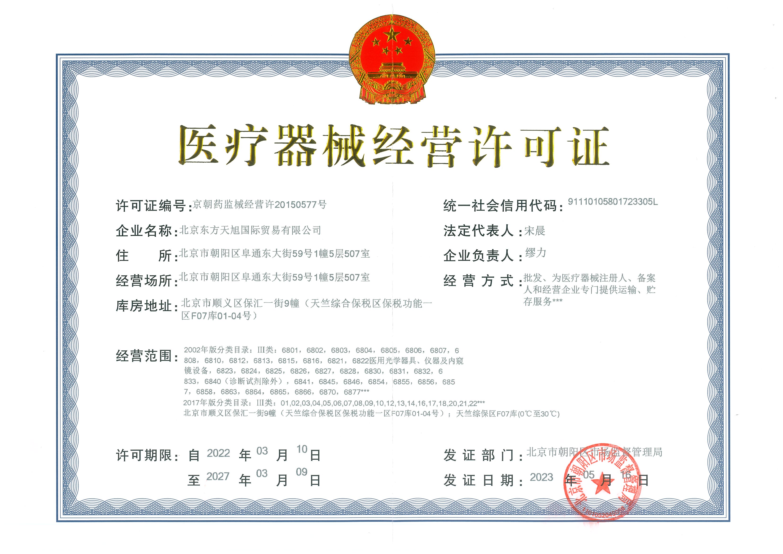 医疗器械经营许可证书