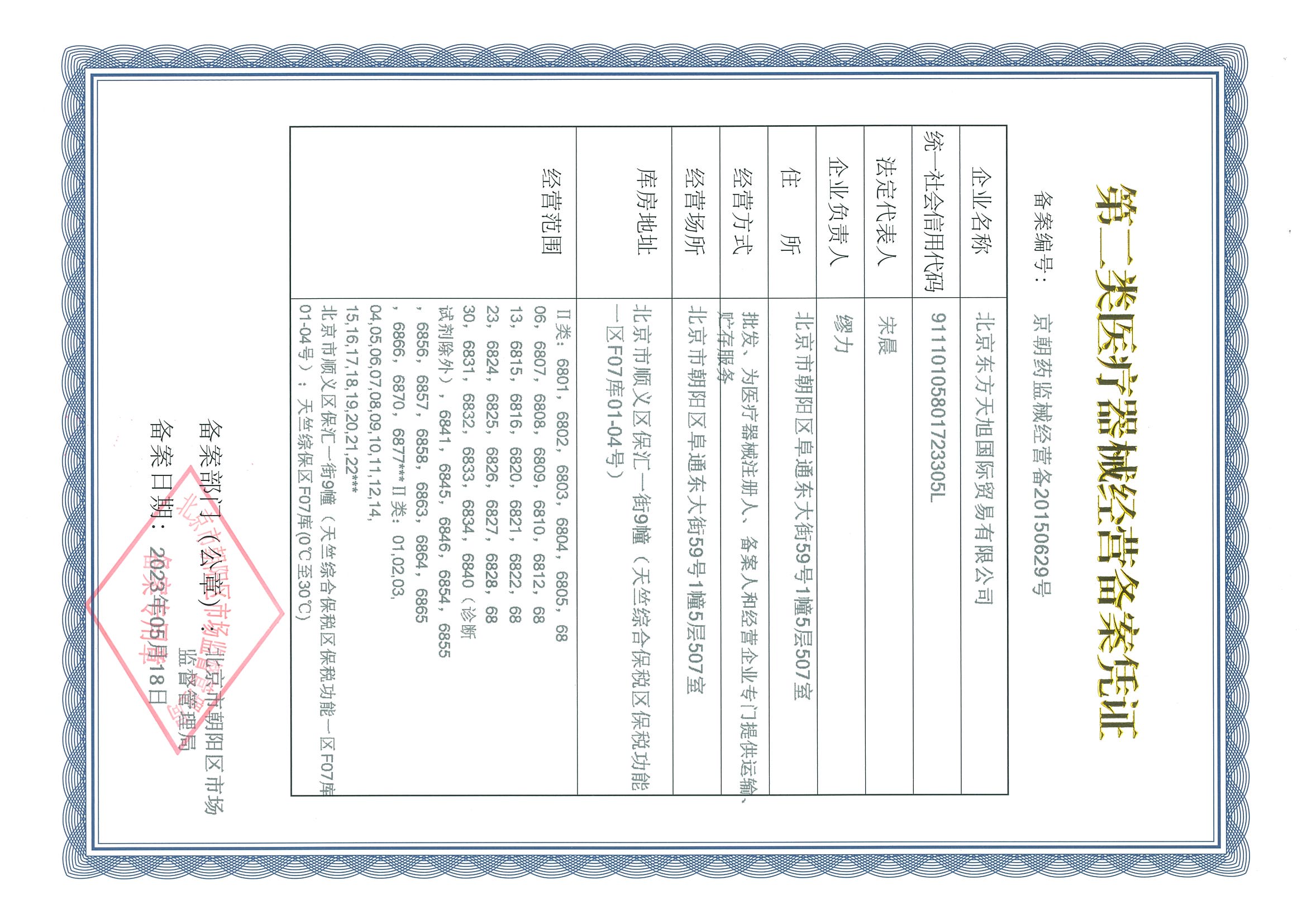 二类医疗器械经营备案凭证