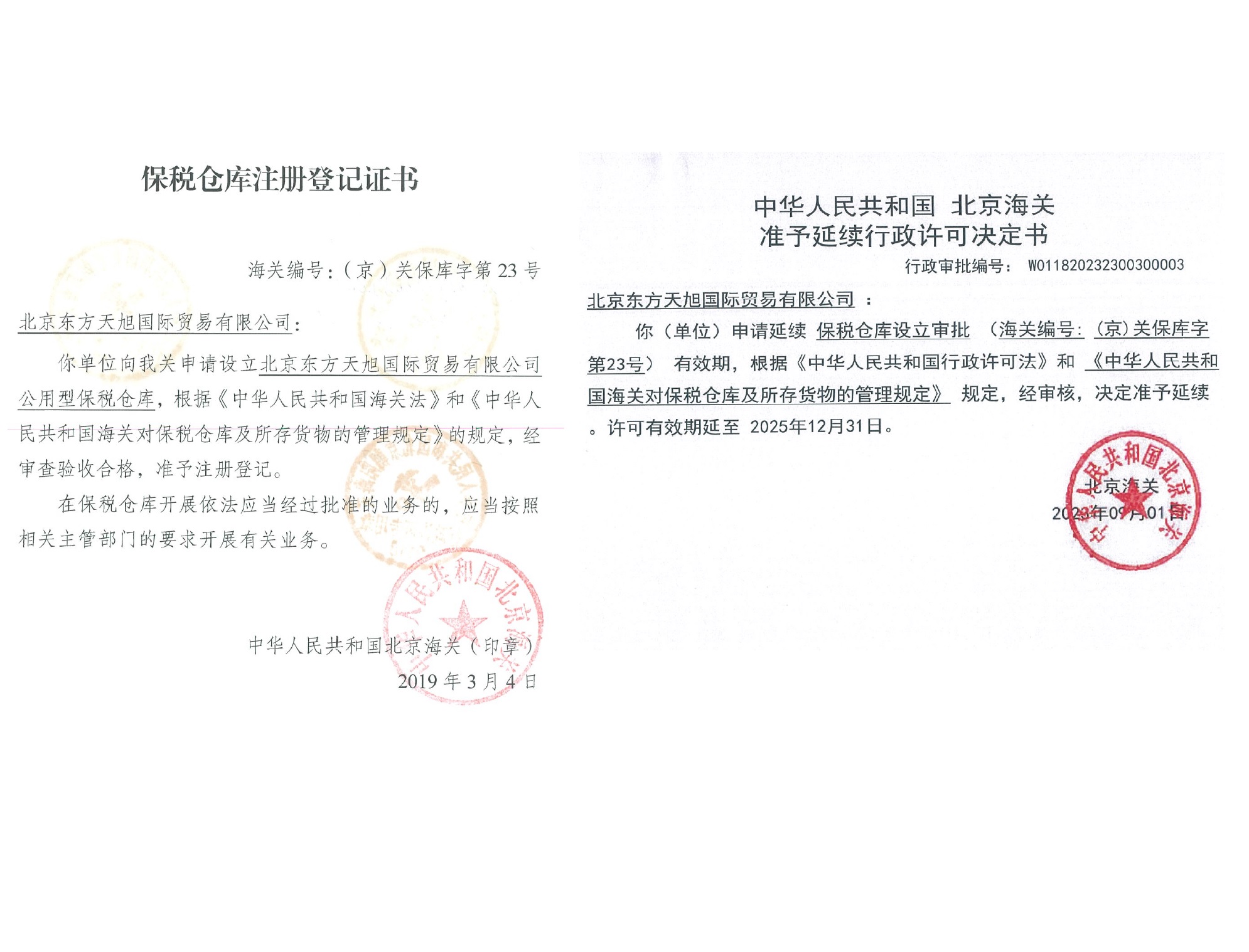 保税货仓挂号证书